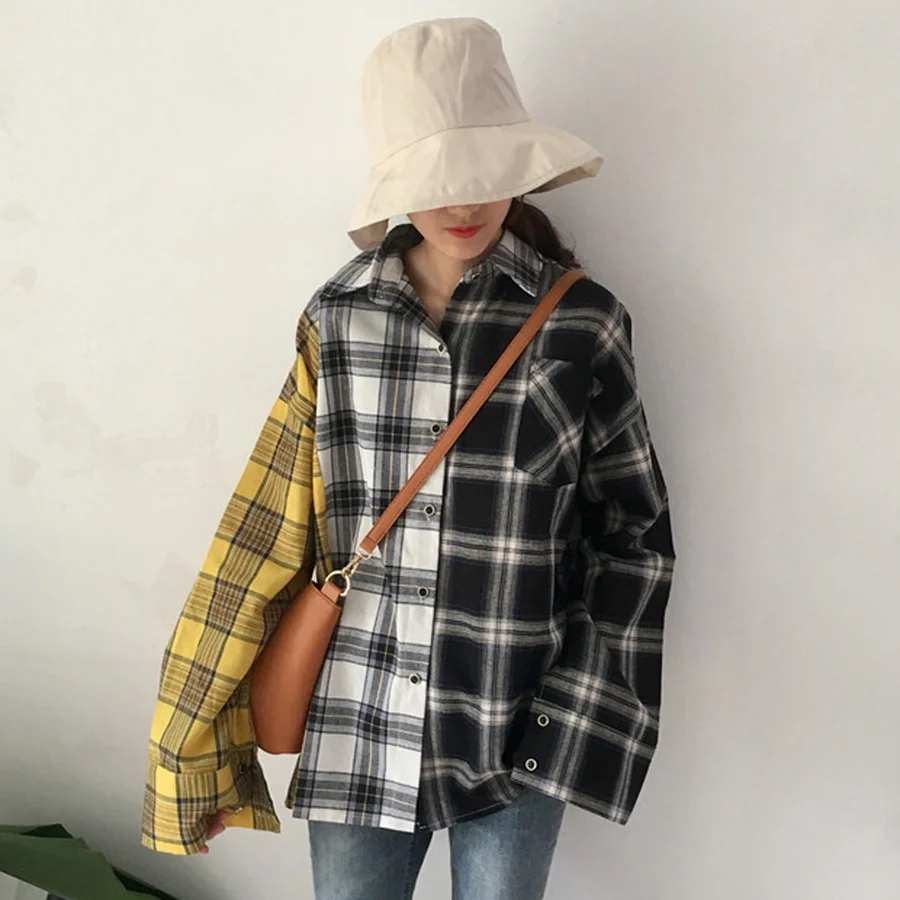 Special Offer BTS chemise à carreaux femmes coton Patchwork à manches longues blouse décontractée mode coréenne vêtements printemps automne femmes hauts et chemisiers Discount 5% Today!