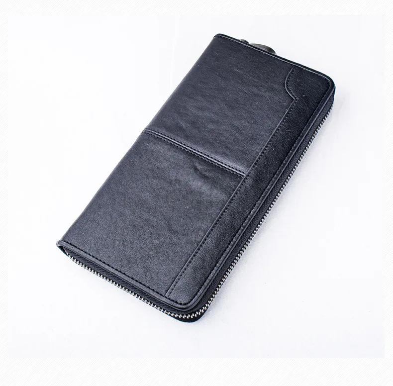 Special Offer Cuir véritable peau de vache noir long sac à main zip porte carte pour les hommes Discount 0% Today!