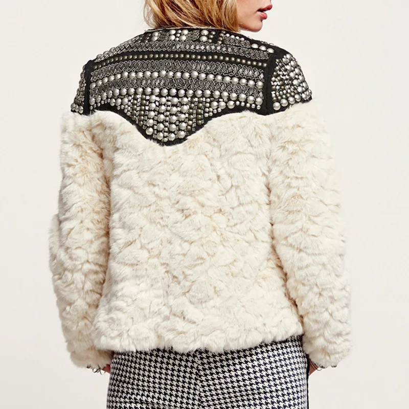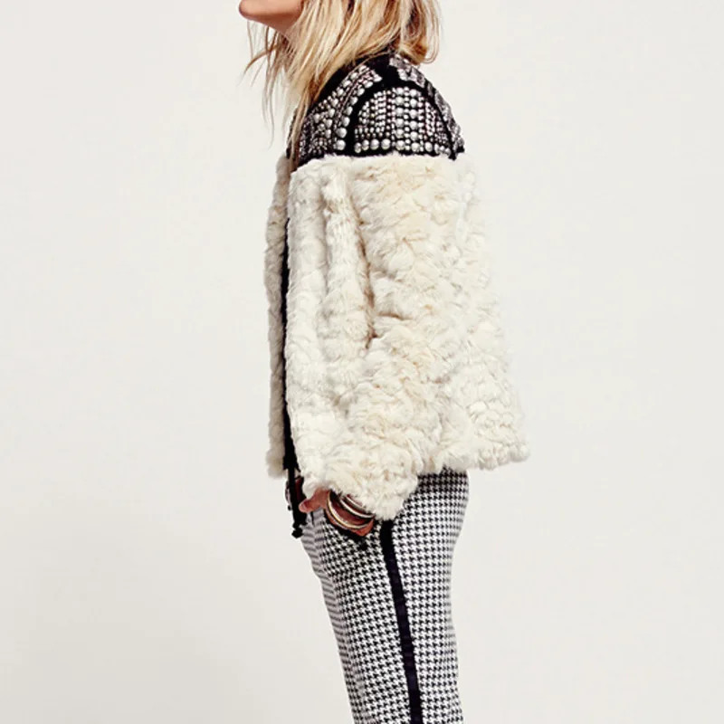 Special Offer TVVOVVIN haute qualité nouvelle automne hiver 2019 Rivet Patchwork femme manteau de fourrure de lapin Jaqueta Feminina veste Q433 Discount 18% Today!