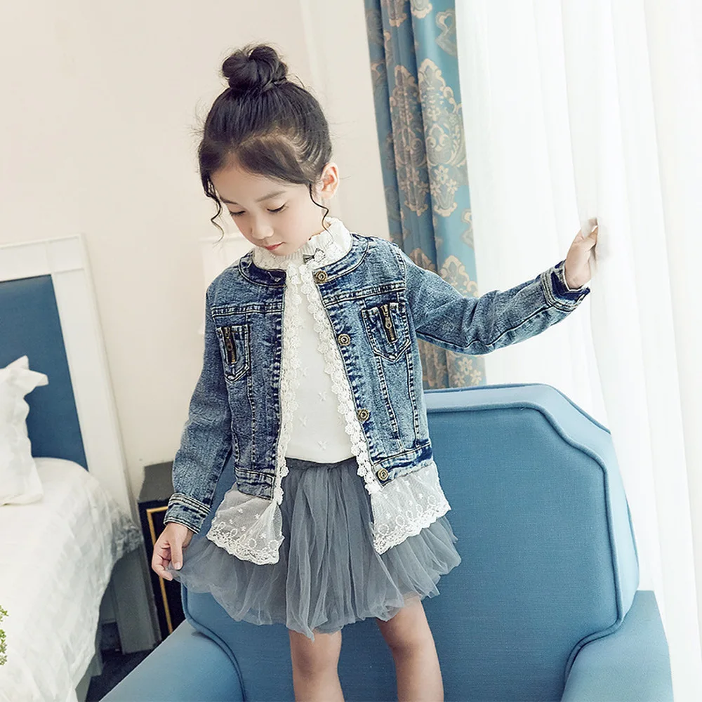 Special Offer Boutique Denim veste pour filles enfants tenues mode filles dentelle Denim veste avec dentelle enfants vêtements survêtement et manteau Discount 30% Today!