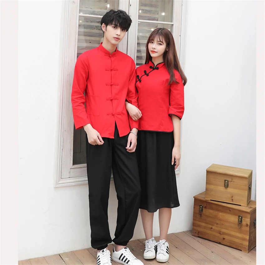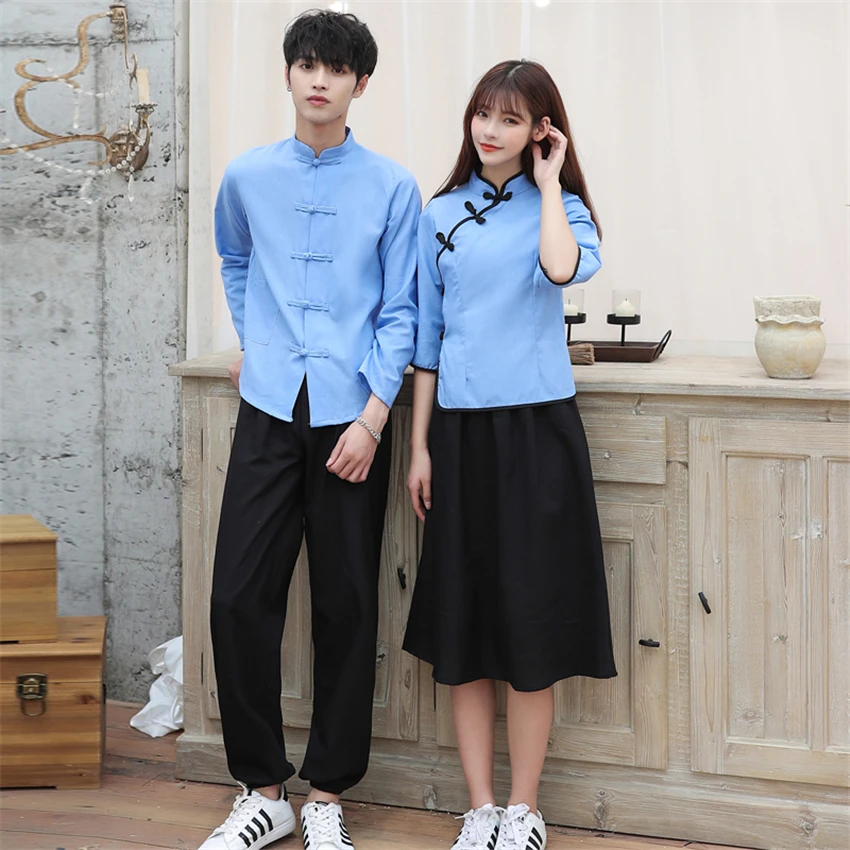 Special Offer Style traditionnel chinois femme vêtements ensemble scène Performance Costumes homme lin tunique costume étudiant école uniforme Tang costume Discount 39% Today!