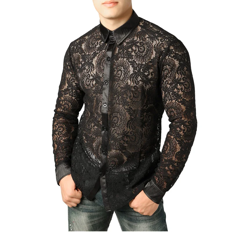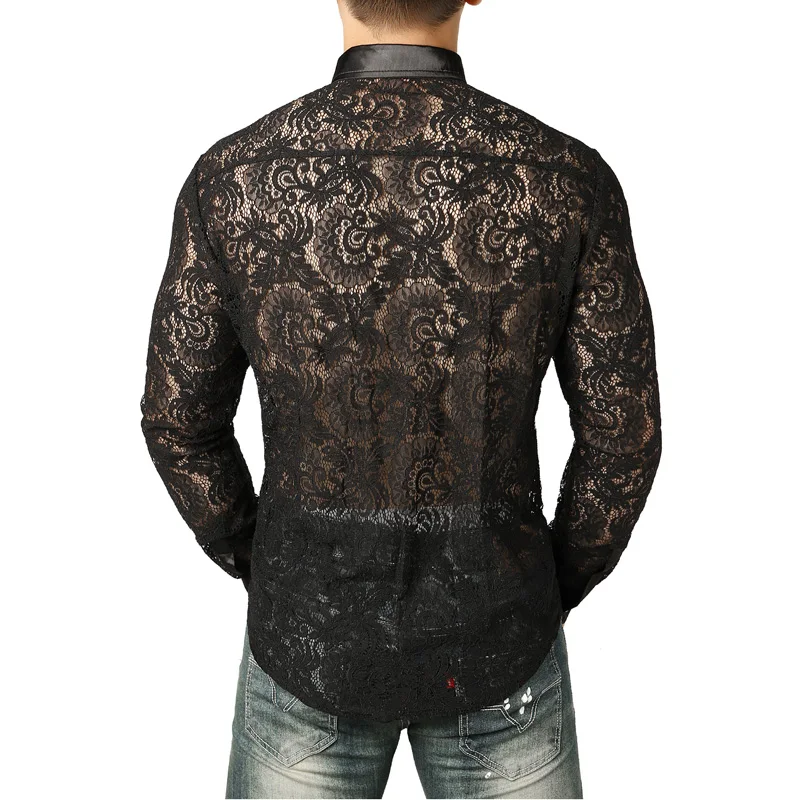 Special Offer Pour hommes maille voir à travers résille Clubwear chemises Slim Fit manches longues Sexy dentelle Chemise hommes fête événement bal Transparent Chemise 2XL Discount 50% Today!