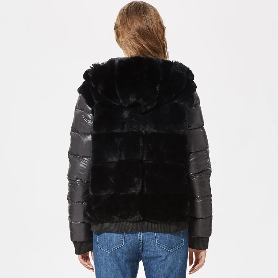 . (50% Off) Achat Réel rex manteau de fourrure de lapin avec capuche manteau doudoune manches sport mode vraie fourrure veste à capuche Pas Cher Prix.