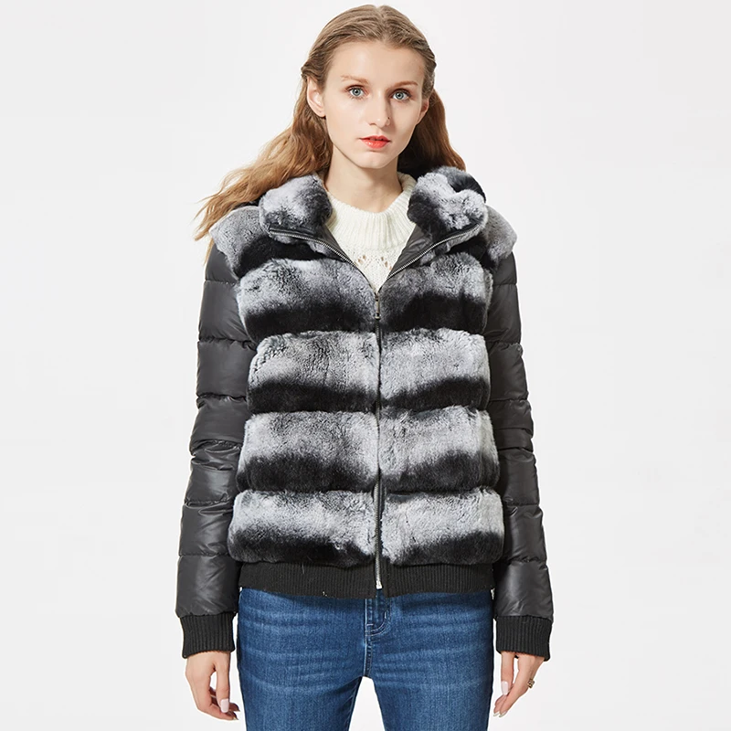 Special Offer Réel rex manteau de fourrure de lapin avec capuche manteau doudoune manches sport mode vraie fourrure veste à capuche Discount 50% Today!