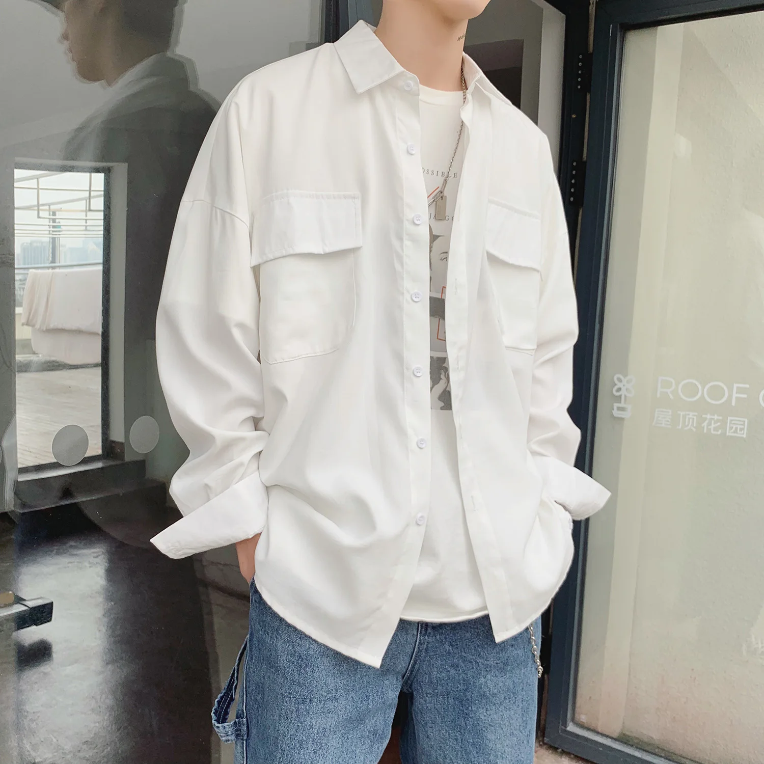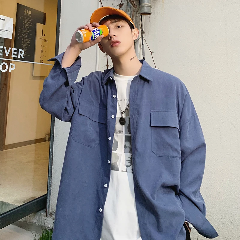 Special Offer 2019 été corée Style Oversize mince 3 couleurs mode Streetwear à manches longues solide hommes chemise Discount 20% Today!