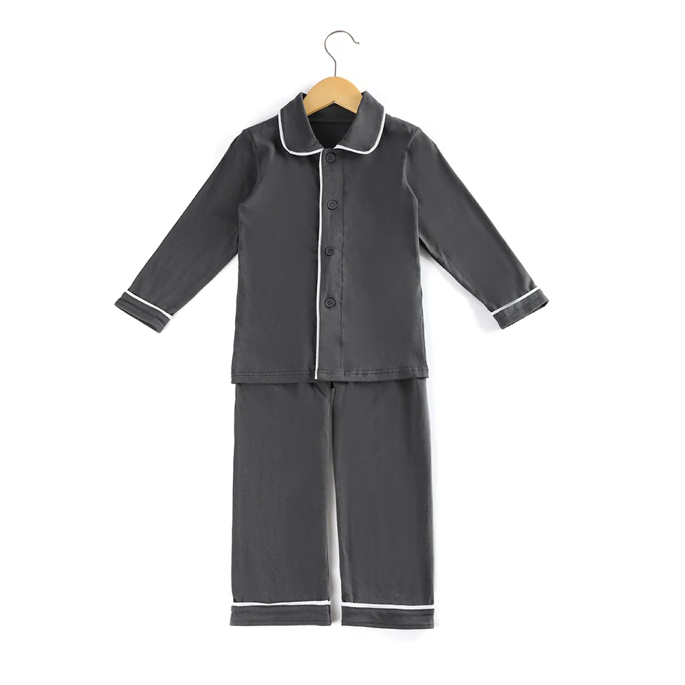 Special Offer 100% coton couleur unie garçons vêtements de nuit pour filles bouton famille correspondant enfants noël volants enfants pyjamas Discount 20% Today!