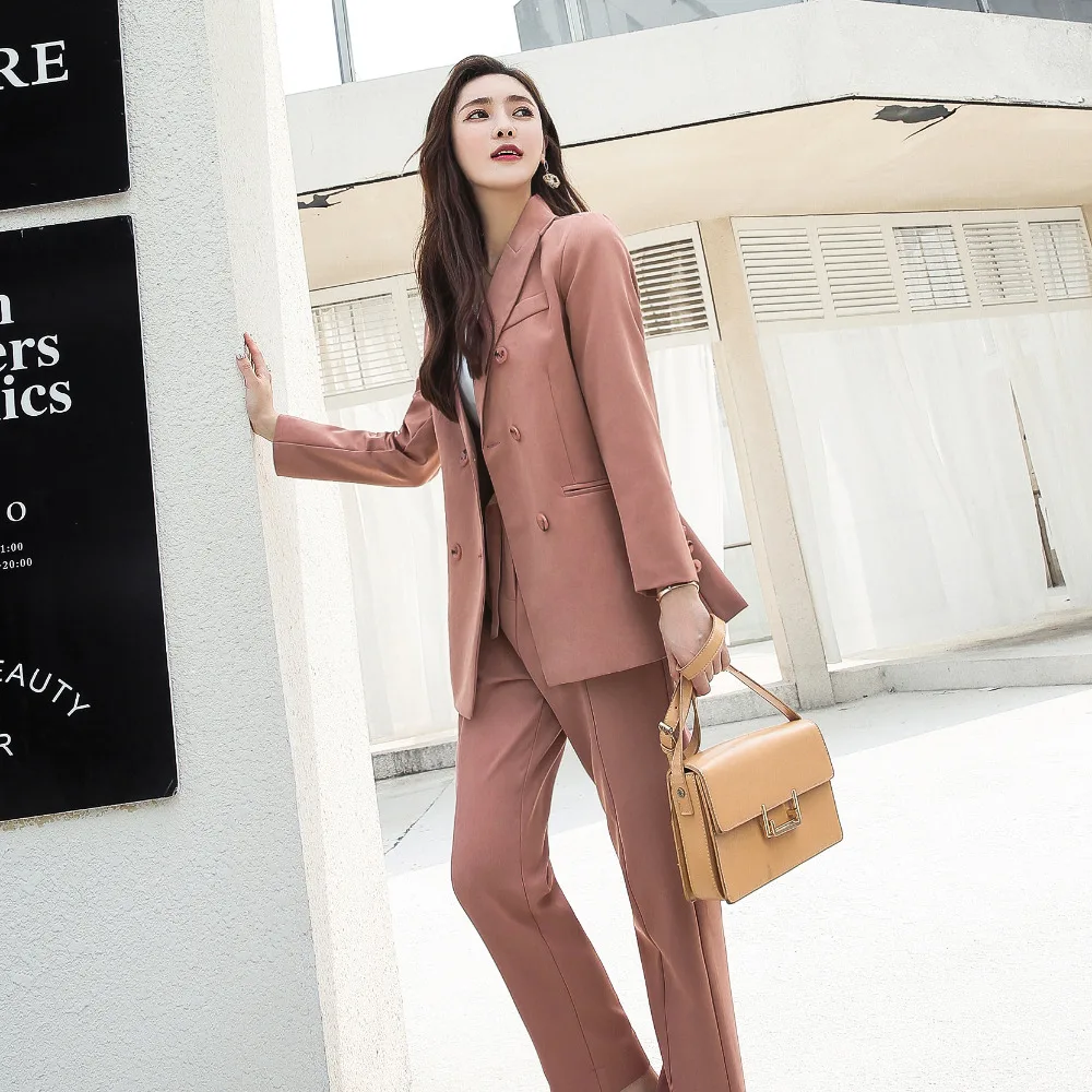 . (20% Off) Acheter Femmes bureau dame deux pièces solide élégant Double boutonnage Turn down col Blazers pantalon avec ceintures nouveaux costumes S88713Y Pas Cher Prix.