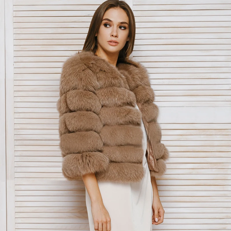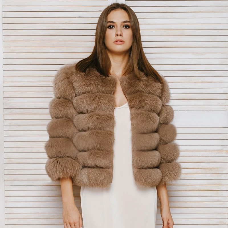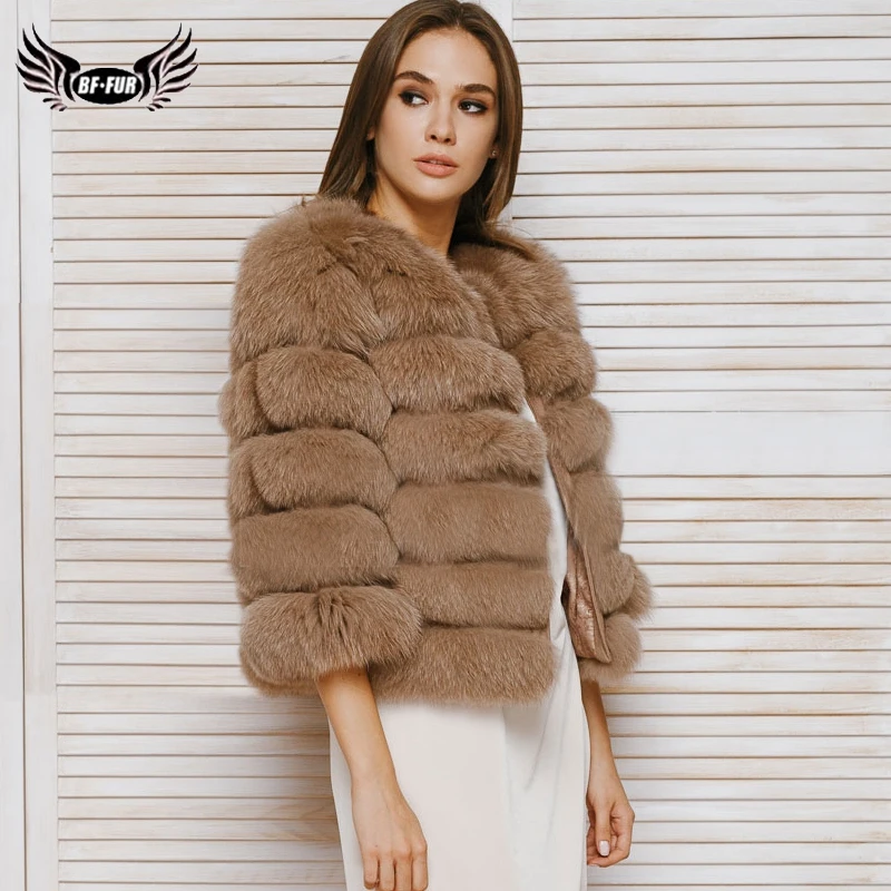 . (30% Off) Vente BFFUR 2019 réel manteau de fourrure femmes vêtements cinq rangées court chaud veste Six rangées de mode Natrual fourrure de renard femme manteaux parc avec Pas Cher Prix.
