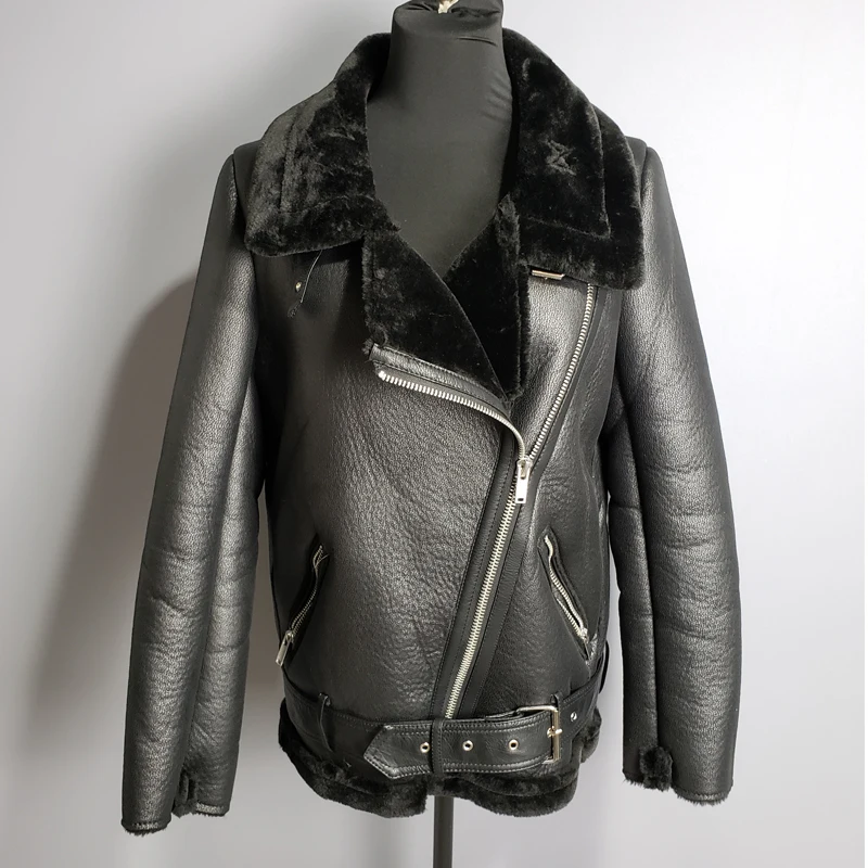 Special Offer 2019 hiver peau de mouton manteaux femmes épaissir Faux cuir fourrure manteau femme fourrure doublure en cuir veste aviateur veste casaco feminino Discount 31% Today!