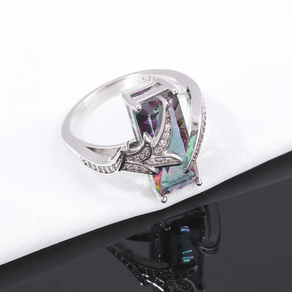 Special Offer CiNily arc en ciel somptueux grandes bagues coupées avec pierre mystique carrée argent plaqué bohème Boho Vintage Cocktail bijoux cadeaux femme Discount 40% Today!