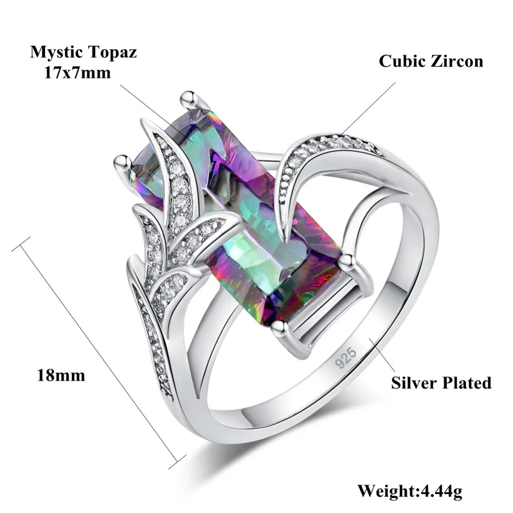 . (40% Off) Achat CiNily arc en ciel somptueux grandes bagues coupées avec pierre mystique carrée argent plaqué bohème Boho Vintage Cocktail bijoux cadeaux femme Pas Cher En Ligne.