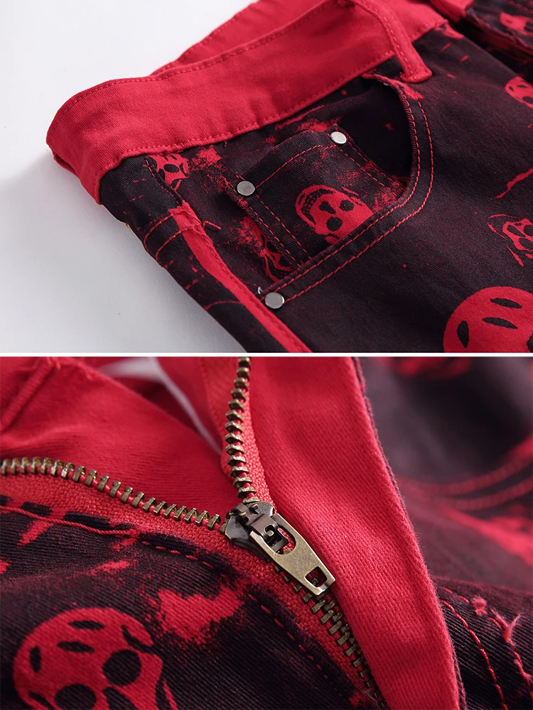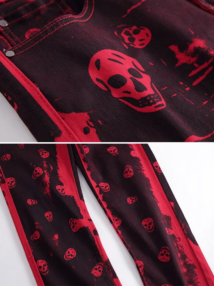 Special Offer Sokotoo homme crâne imprimé rouge denim jeans grande taille mode slim fit motif peint stretch pantalon Discount 40% Today!