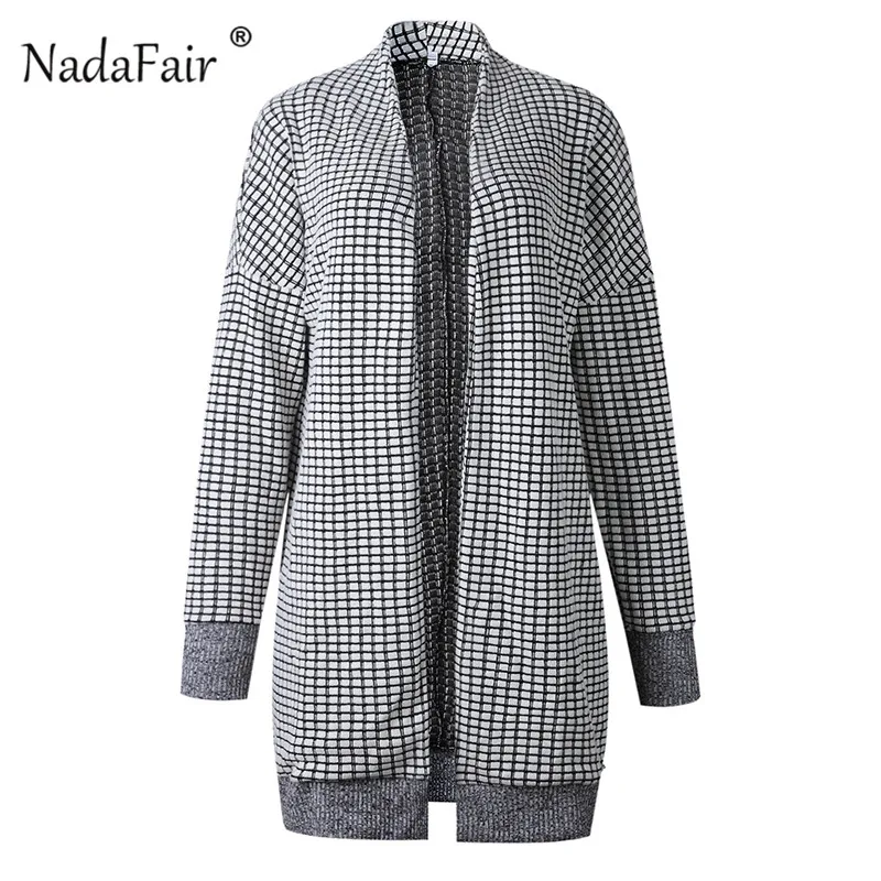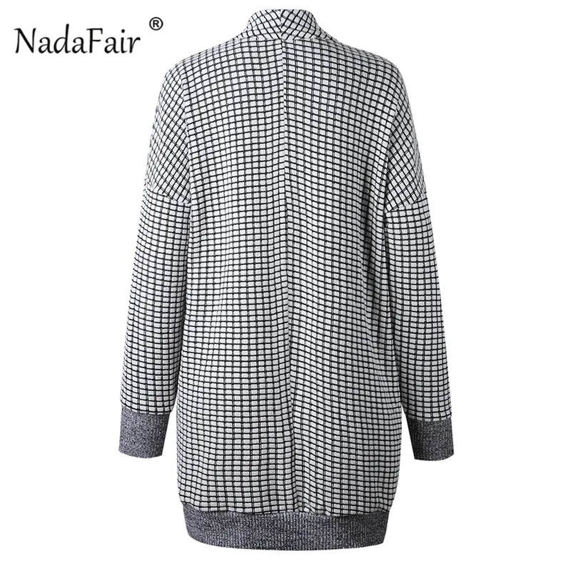 Special Offer Nadafair surdimensionné Long Cardigan femmes Vintage Plaid hiver tricoté Cardigan pull femme décontracté automne manteau Outwear Discount 40% Today!