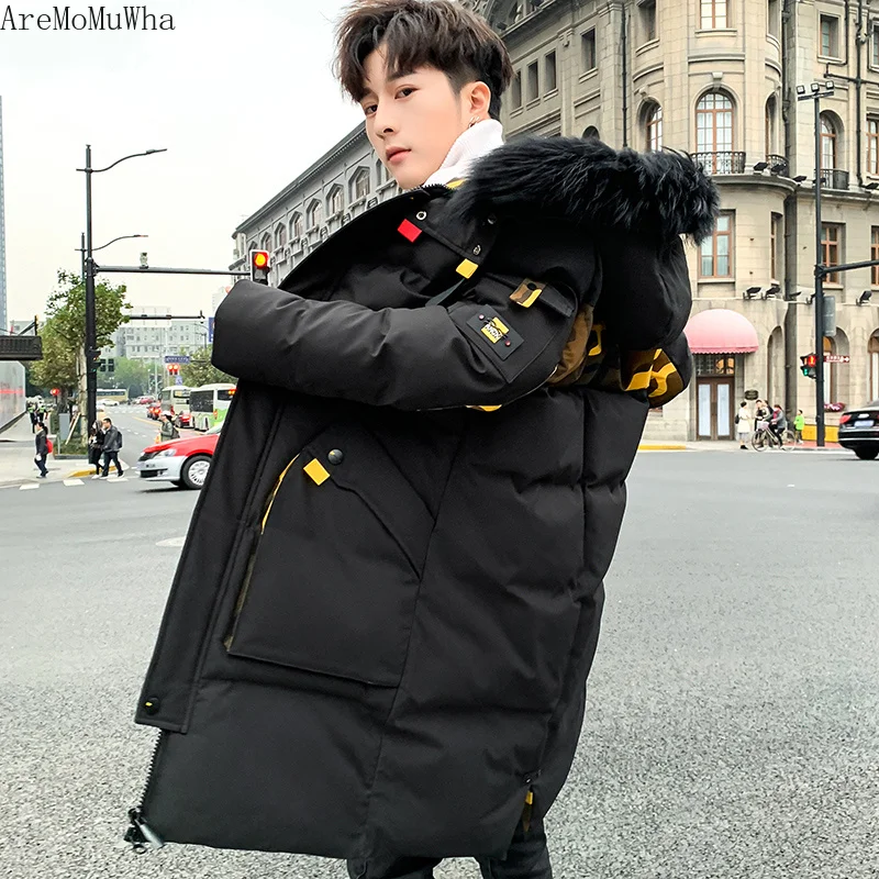 . (50% Off) Achat AreMoMuWha hommes coton hiver nouveau épais tendance veste hommes longue décontracté couleur unie à capuche coton veste hommes doudoune QX346 Pas Cher Prix.