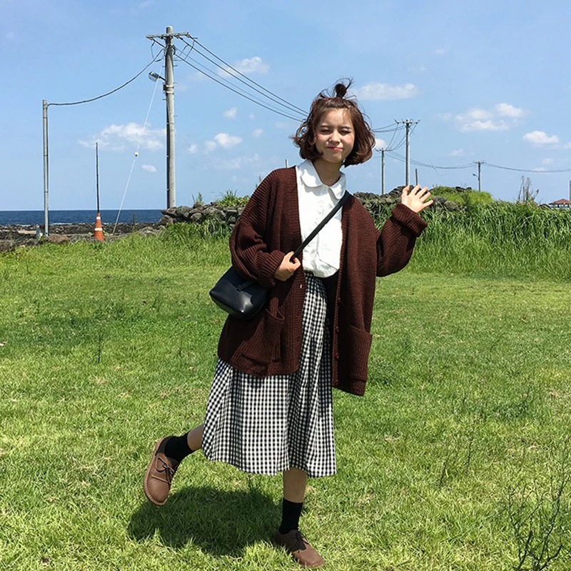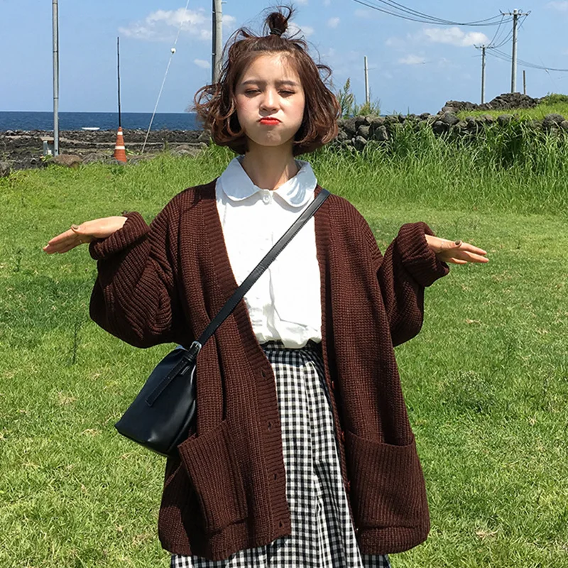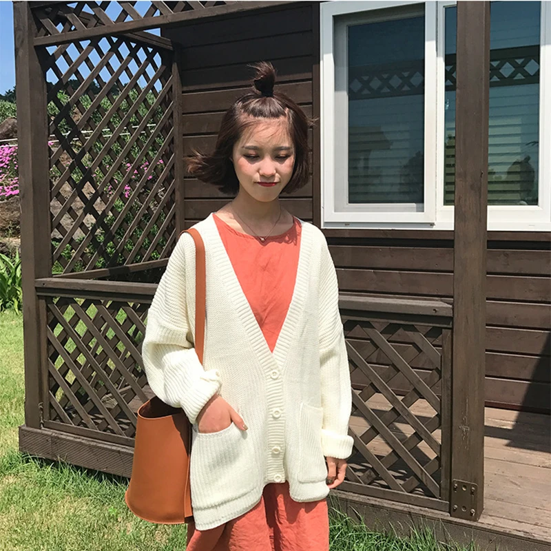 Special Offer Coréen femmes lâche Cardigan manteau Double poche conception chandail veste mignon doux décontracté Long tricoté Cardigan rose Cape Top Discount 20% Today!