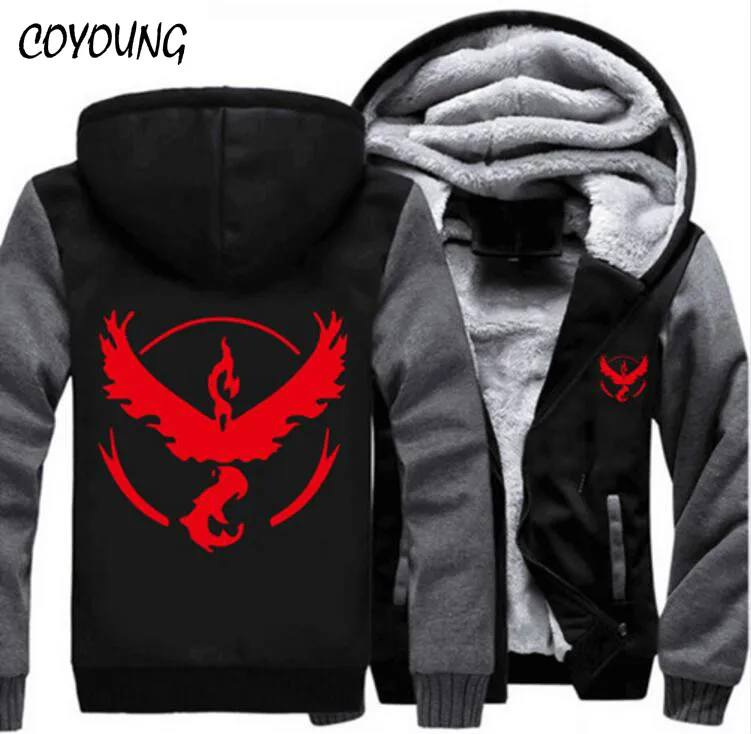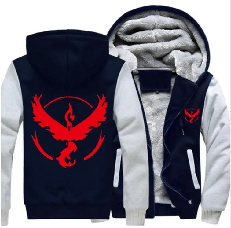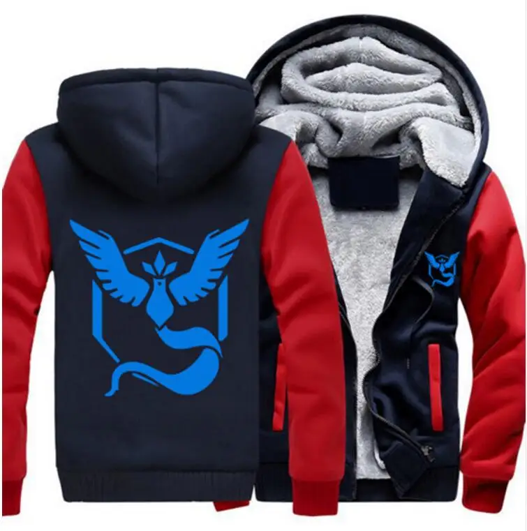 Special Offer USA taille hommes Hoodies Pokemon Go équipe Valor équipe mystique équipe Instinct hiver polaire Sweatershirts Zipper epaissir manteau veste Discount 33% Today!