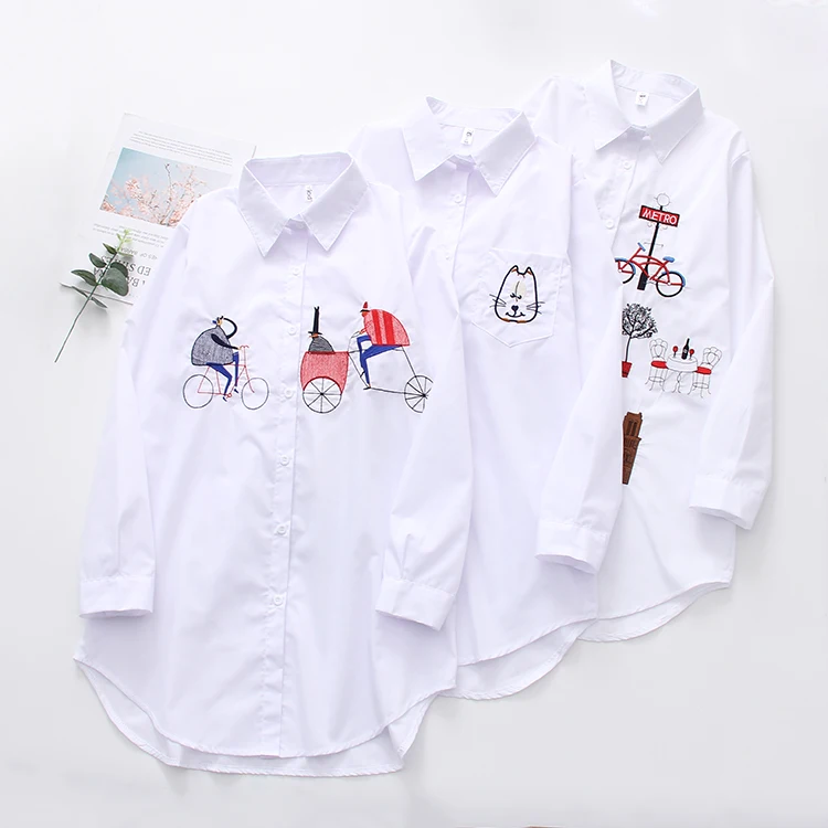 Special Offer 2019 nouvelle chemise blanche tenue décontracté bouton haut col rabattu manches longues coton Blouse broderie Feminina offre spéciale T8D427M Discount 40% Today!