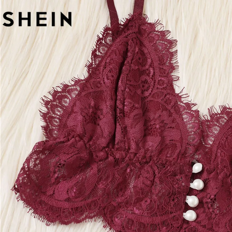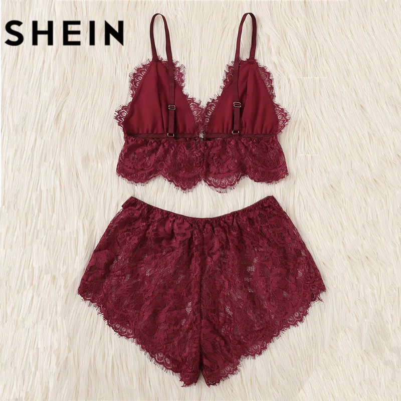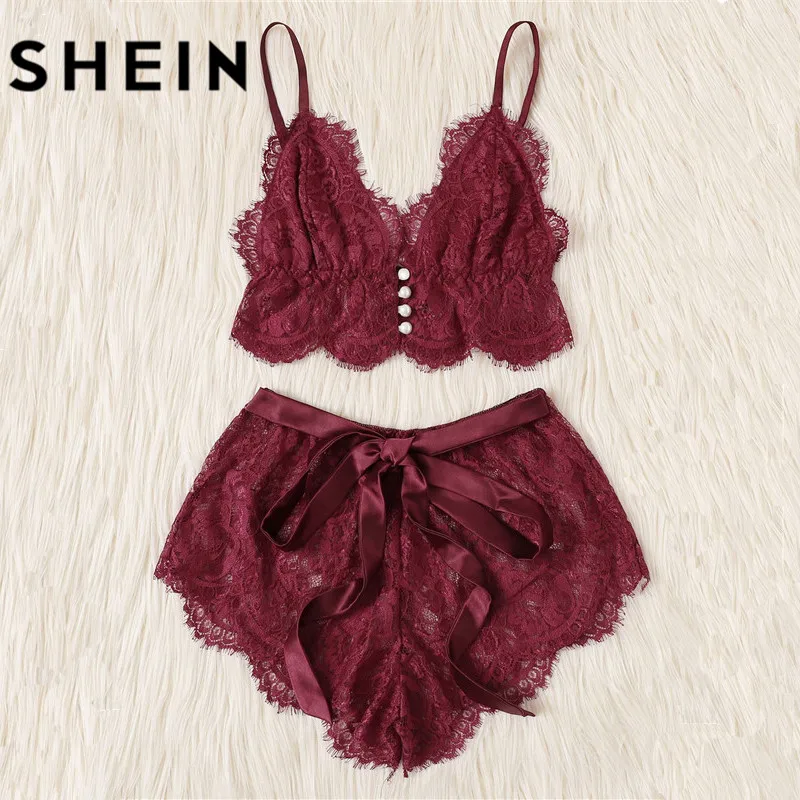 . (40% Off) Achat SHEIN Sexy femmes vêtements de couchage sans manches sexy pour dormir pyjamas pour femmes col en V dentelle garniture Satin Cami et short pyjama ensemble Pas Cher En Ligne.