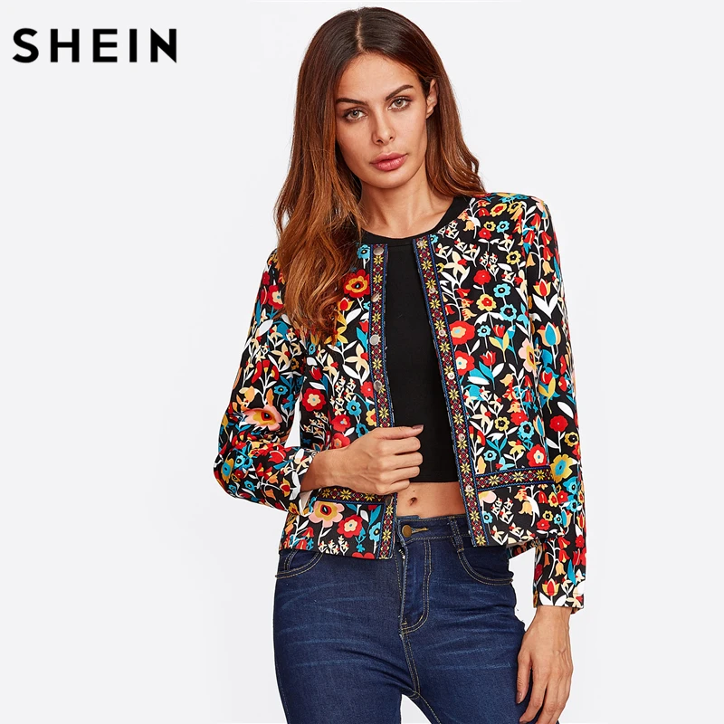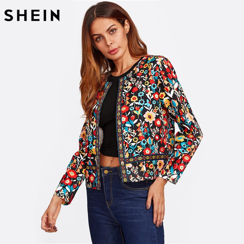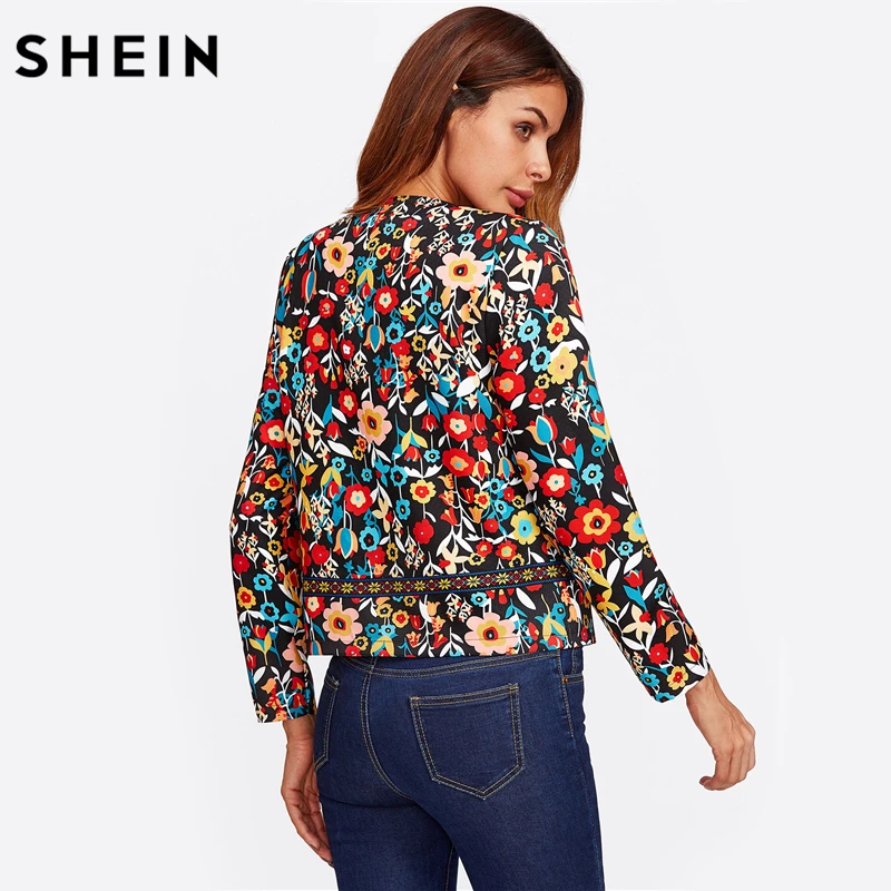 Special Offer SHEIN Press patte de boutonnage botanique veste automne veste pour femmes multicolore sans col simple boutonnage élégant veste Discount 40% Today!