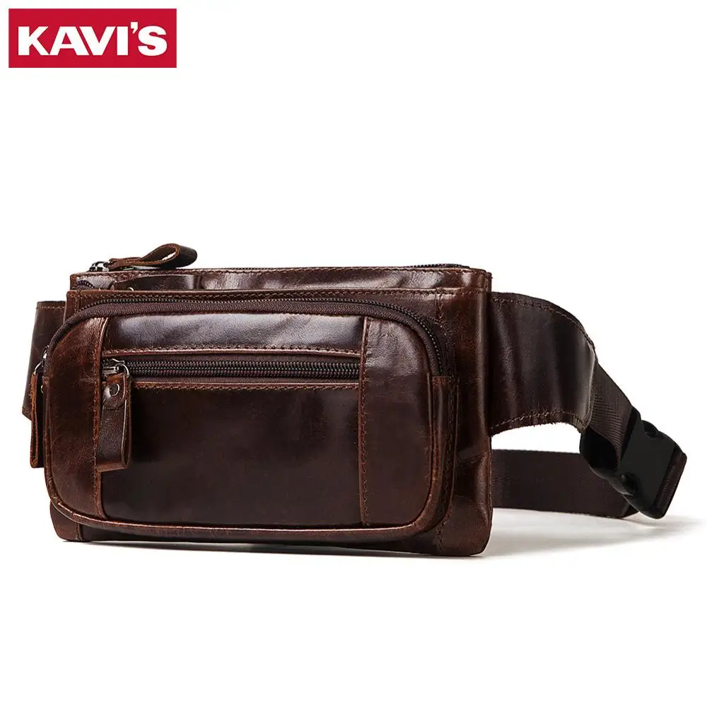 Special Offer KAVIS Vintage 100% peau de vache en cuir véritable hommes taille sac hommes Packs ceinture boucles poitrine sac Mobile support pour téléphone pochette mâle sac à main Discount 43% Today!