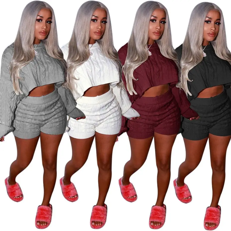 . (44% Off) Vente HAOYUAN femmes deux pièces ensemble Sexy Club tenues pull Crop hauts et Biker Shorts vêtements tricotés survêtement 2 pièces ensembles assortis Pas Cher Prix.