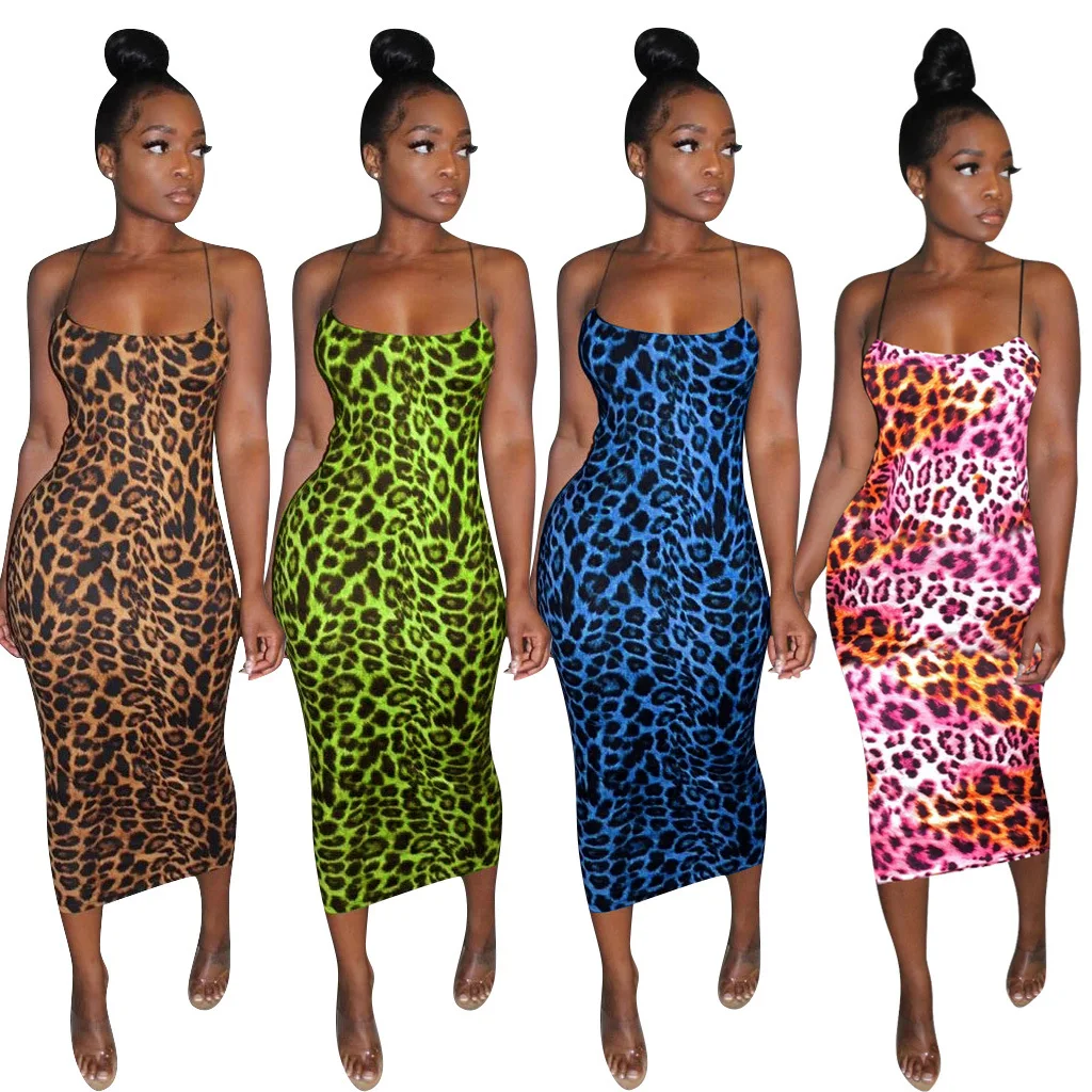. (44% Off) Vente HAOYUAN Sexy guépard imprimé léopard robe Midi femmes vêtements grande taille Vestido élégant Spaghetti sangle moulante robes de boîte de nuit Pas Cher En Ligne.