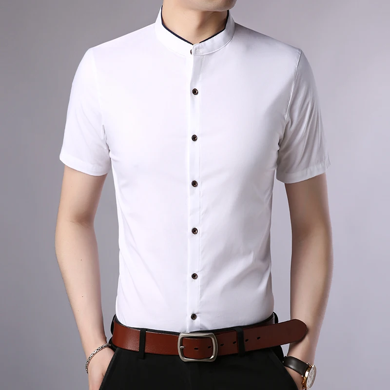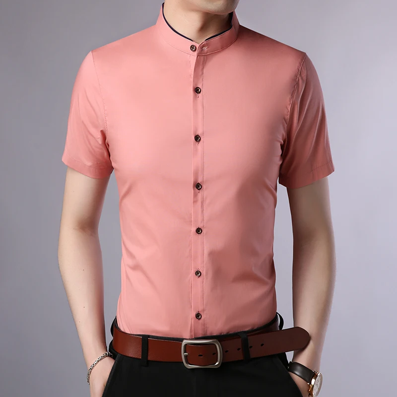 Special Offer 2019 marque de mode chemise de créateur hommes été couleur unie à manches courtes coupe mince Streetwear col Mandarin décontracté hommes vêtements Discount 45% Today!