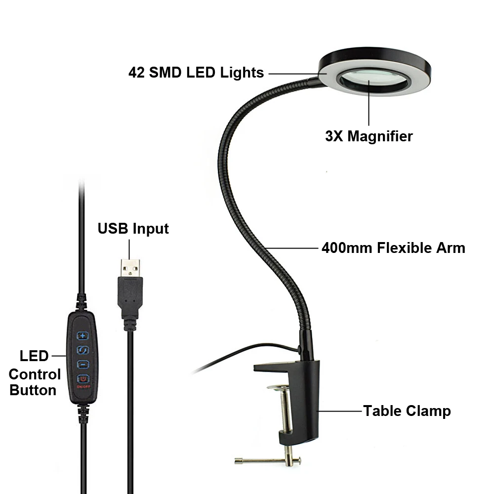 . (49% Off) Vente NEWACALOX USB 3X banc étau Table pince loupe LED lumières Flexible lampe de bureau pour la lecture travail éclairage loupe Pas Cher En Ligne.