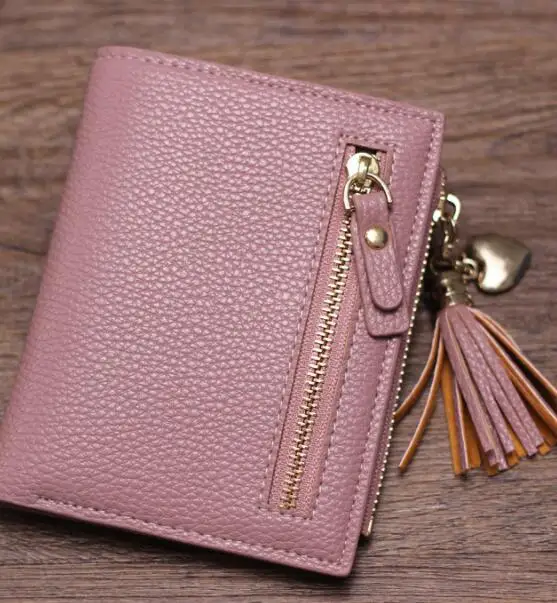 Special Offer 2019 livraison gratuite Tanyatui Simple Mini portefeuille fille courte fermeture éclair glands mignon changement portefeuille étudiant carte sac Discount 5% Today!