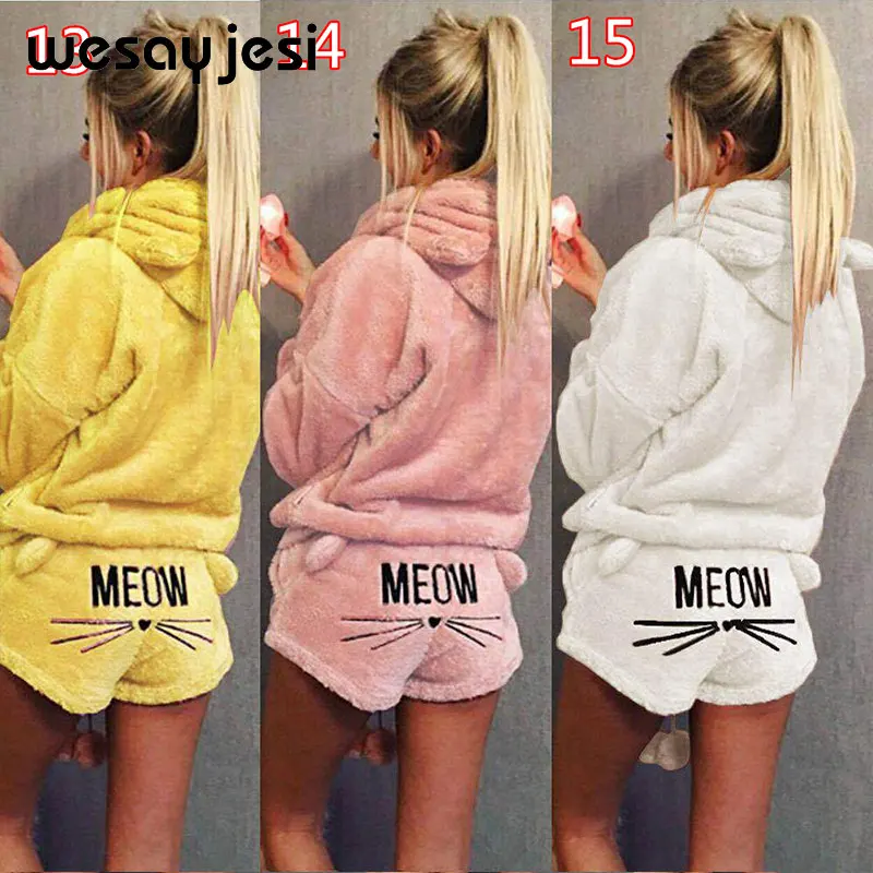 Special Offer Costume de sport femme femmes survêtement grande taille 5XL hiver chaud pyjamas deux pièces ensemble vêtements de nuit mignon chat miaou motif sweats à capuche Discount 52% Today!