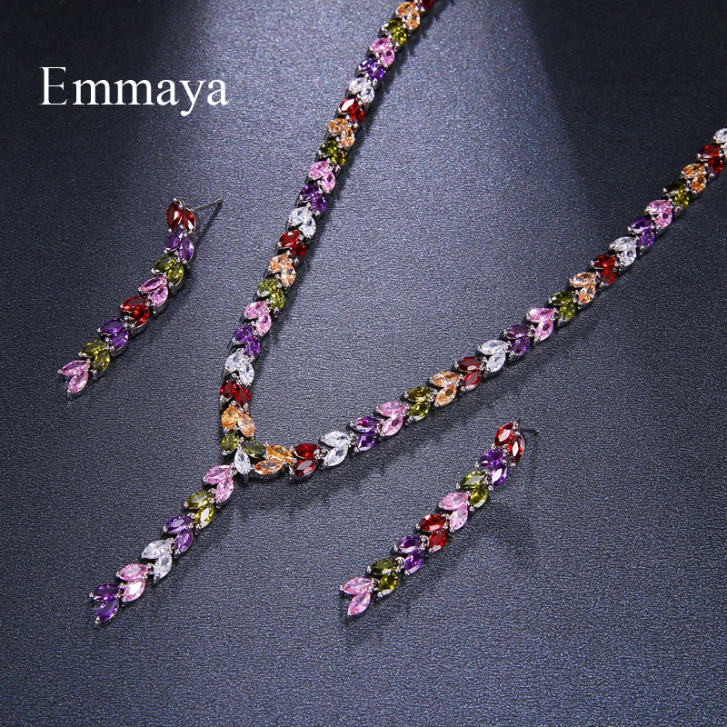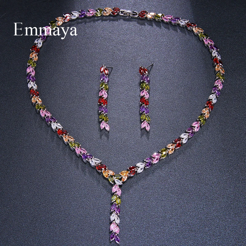 Special Offer Emmaya luxe coloré étincelles cubique Zircon goutte boucle d oreille collier lourd fête bijoux ensemble de mariage robe de mariée cadeau Discount 15% Today!