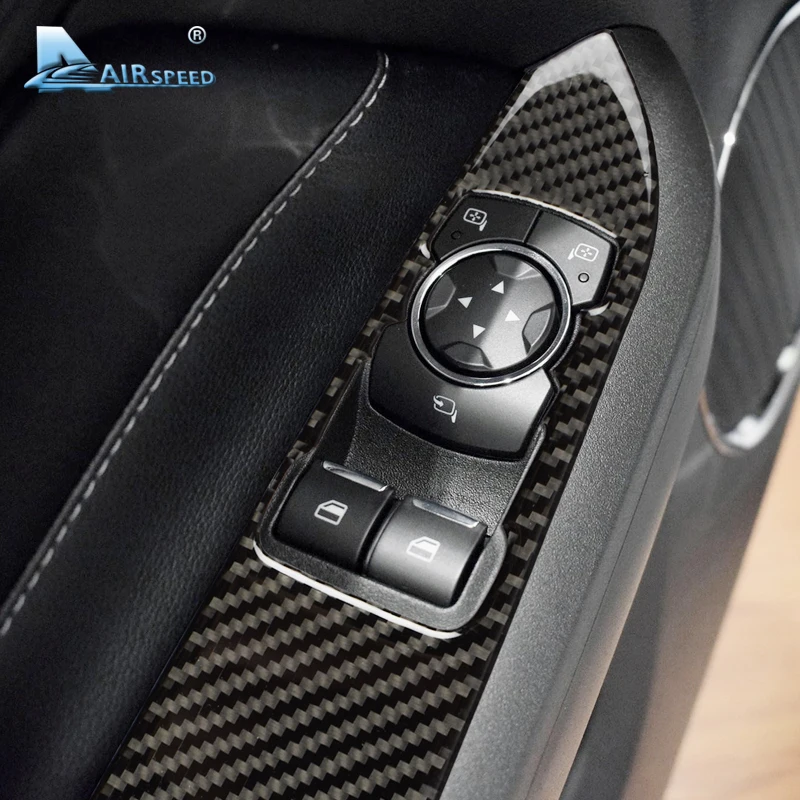 Special Offer Airspeed fibre de carbone voiture fenêtre interrupteur de commande panneau décor cadre couverture pour Ford Mustang 2015 2016 2017 voiture style autocollant Discount 25% Today!