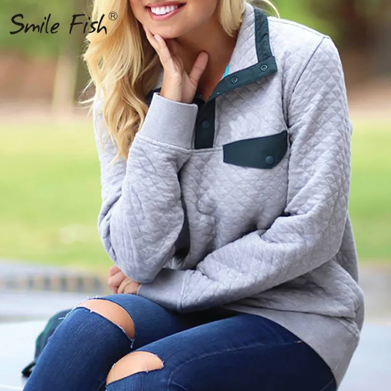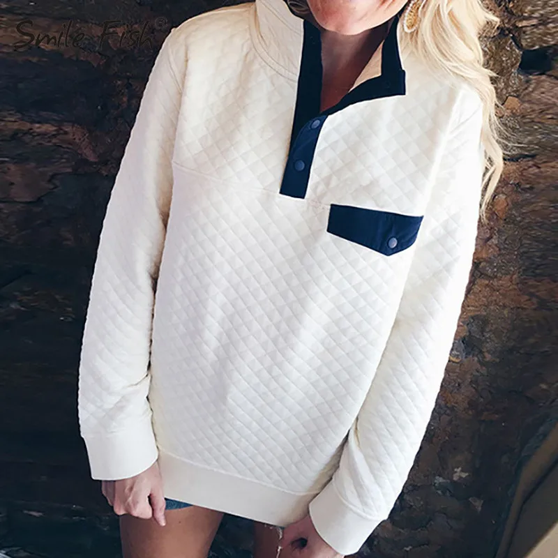Special Offer Automne Femmes Shirts Longs sweat à capuche et manches longues 2019 Hiver Femme Col rabattu décontracté Bouton sweatshirt hauts grande taille GV038 Discount 27% Today!