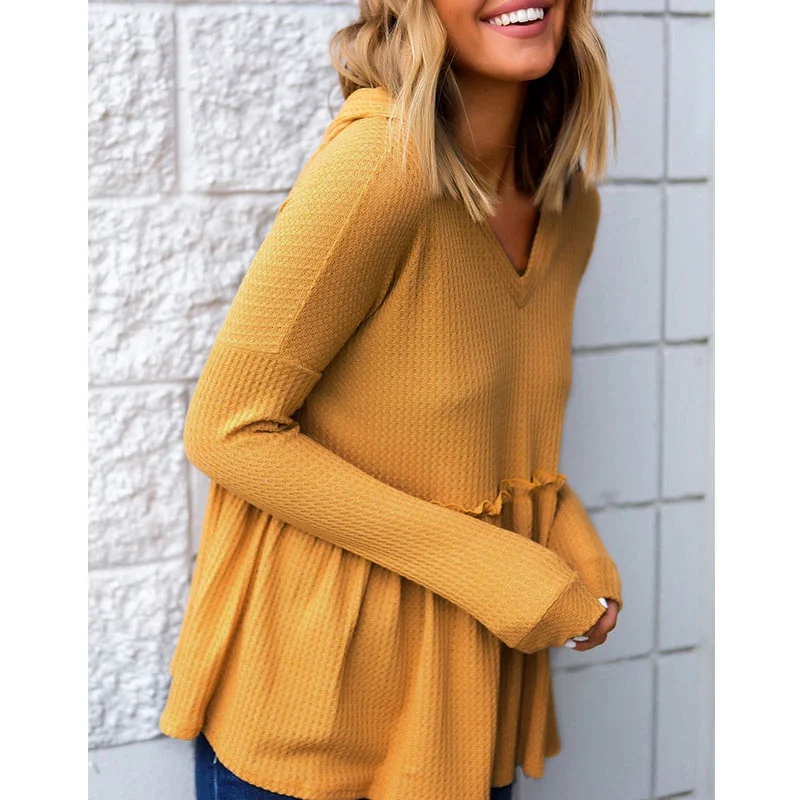 Special Offer Chemise à Manches Longues coréenne Femmes Esthétique Vêtements À Capuche Tshirt Jaune Tricoté hauts Pull Volants Chemises décontracté Streetwear Discount 30% Today!
