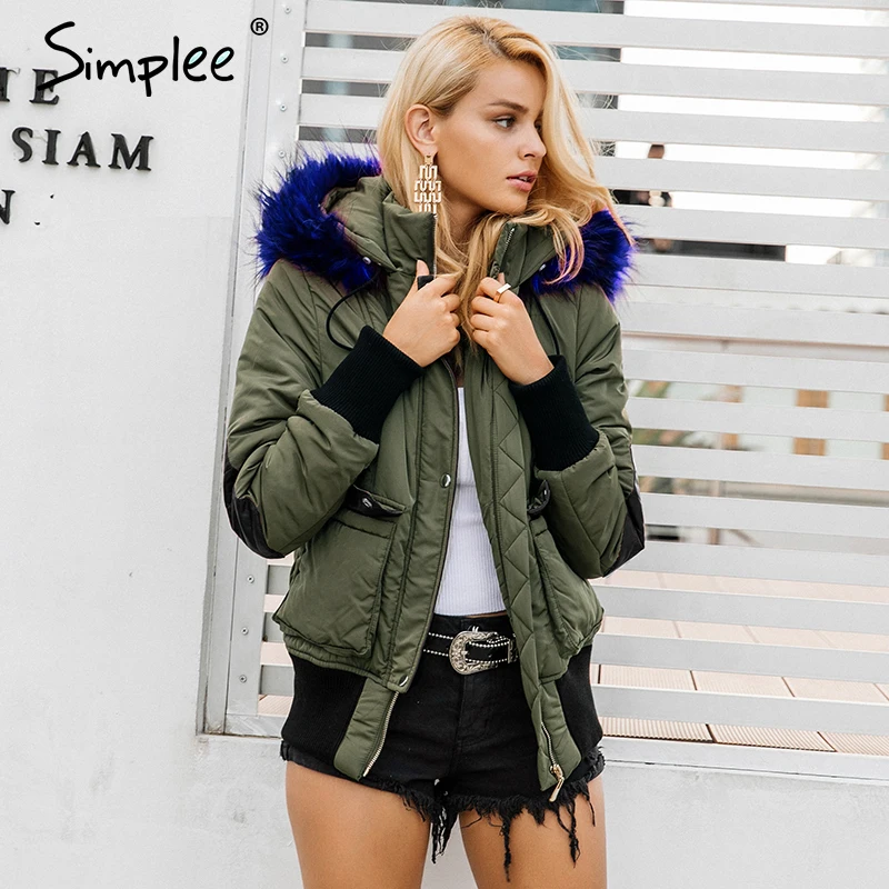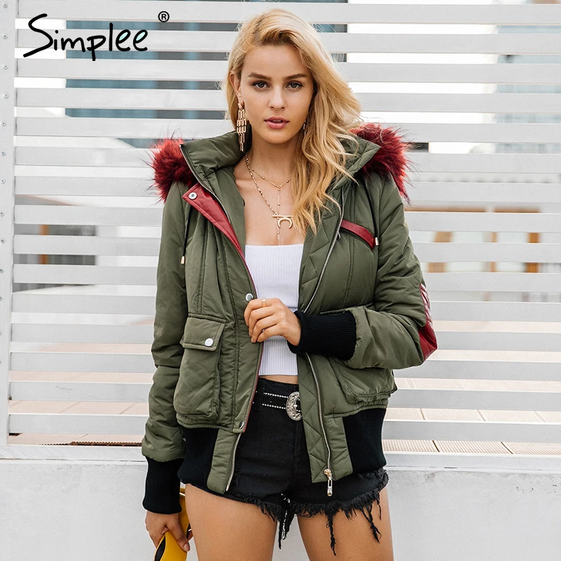 Special Offer Simplee capuche rembourré parka hiver veste femmes manteau fourrure chaud poche fermeture éclair hiver pardessus vêtements de neige épais veste manteau femme Discount 43% Today!