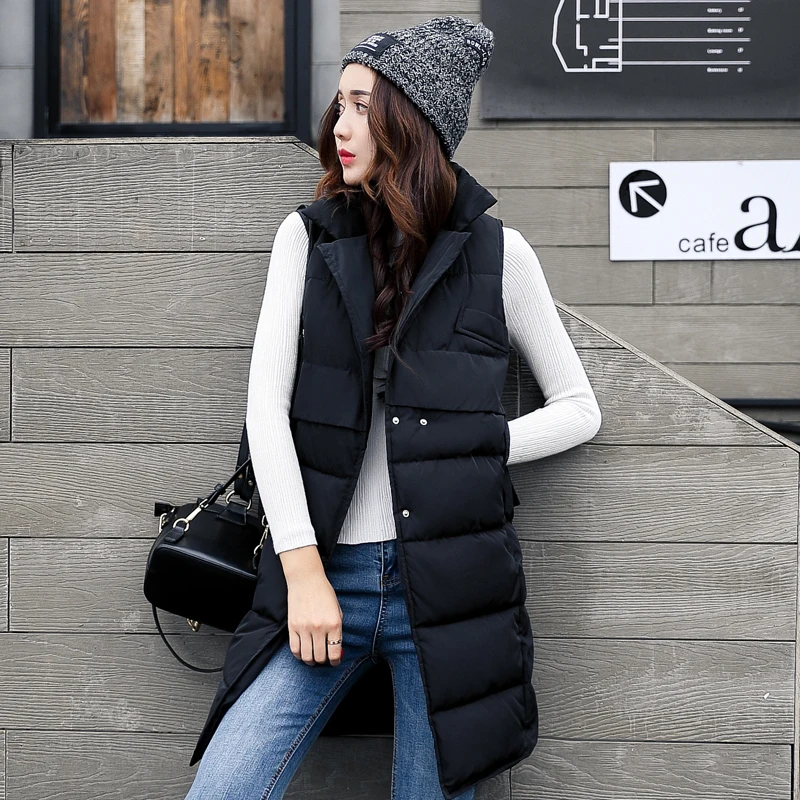 Special Offer ALMUERK automne hiver coton gilet femmes dames décontracté gilet femme sans manches Long gilet veste Slim Fit chaud Simple manteau Discount 50% Today!