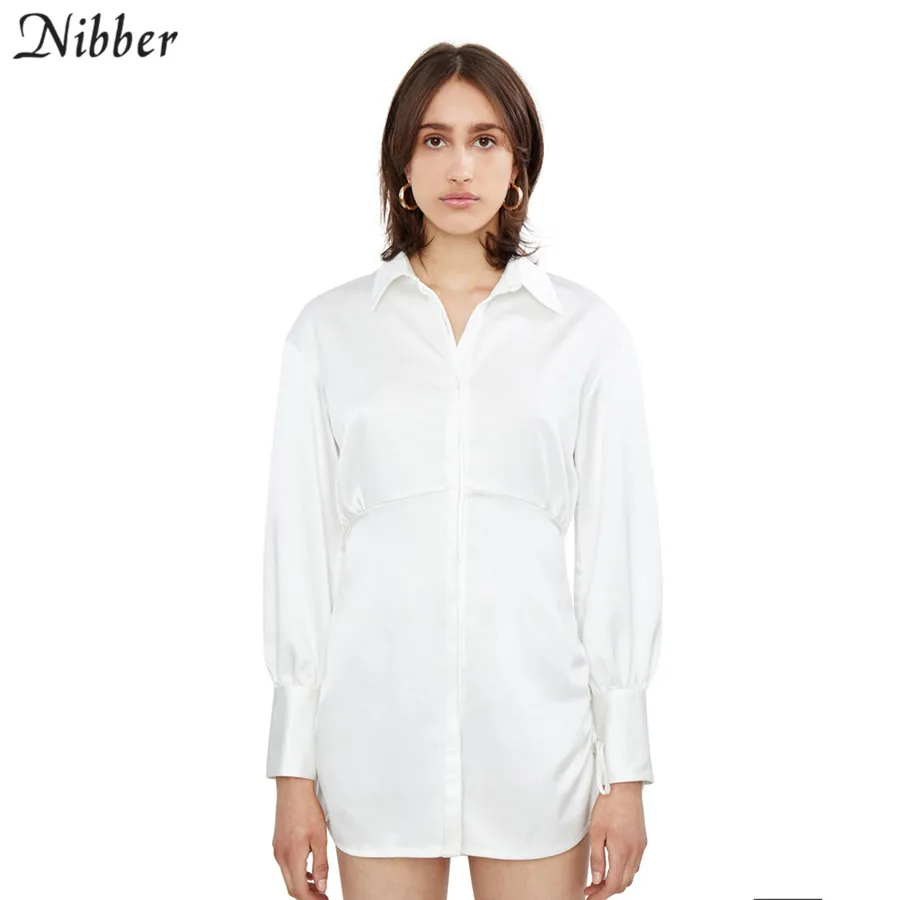 Special Offer Nibber automne bureau dames élégantes robes blanches femmes 2019hot unique boutonnage conception pleine manches décontracté Slim mini robe mujer Discount 50% Today!