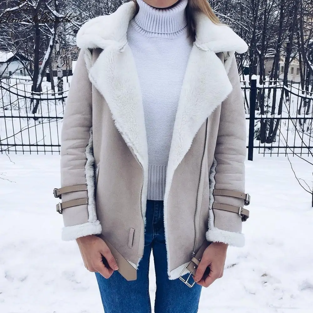 Special Offer Time Silhuette nouveau 2019 hiver daim cuir veste femmes court laine d agneau moto veste épaisse agneaux laine manteau chaud L241 Discount 52% Today!
