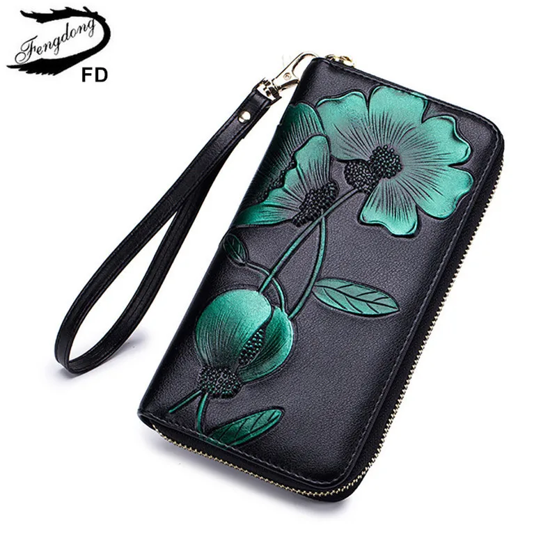 Special Offer Fengdong femmes portefeuille en cuir fleur téléphone sac vintage sac à main à fleurs cadeaux pour filles fermeture éclair longue rfid portefeuille femme porte carte Discount 57% Today!
