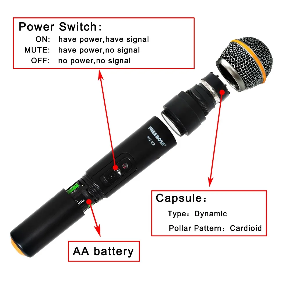 . (12% Off) Acheter Freeboss KU 22 UHF longue portée double canal 2 transmetteur de micro portable professionnel karaoké UHF système de Microphone sans fil Pas Cher Prix.