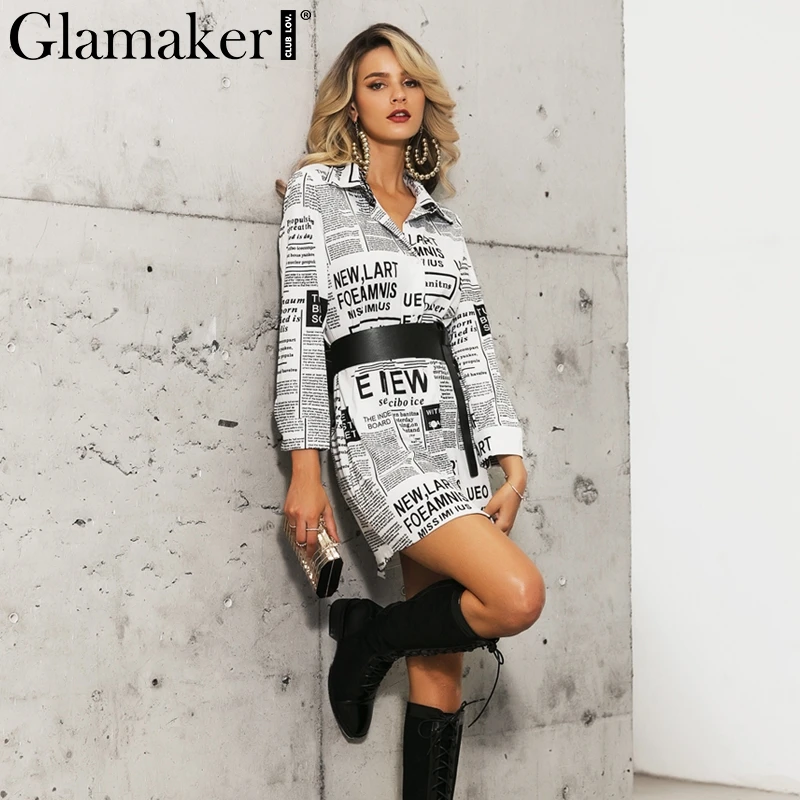Special Offer Glamaker journal impression lettre blouse chemise femmes à manches longues sexy vintage femme blouse blanc automne élégant bureau haut dames Discount 20% Today!