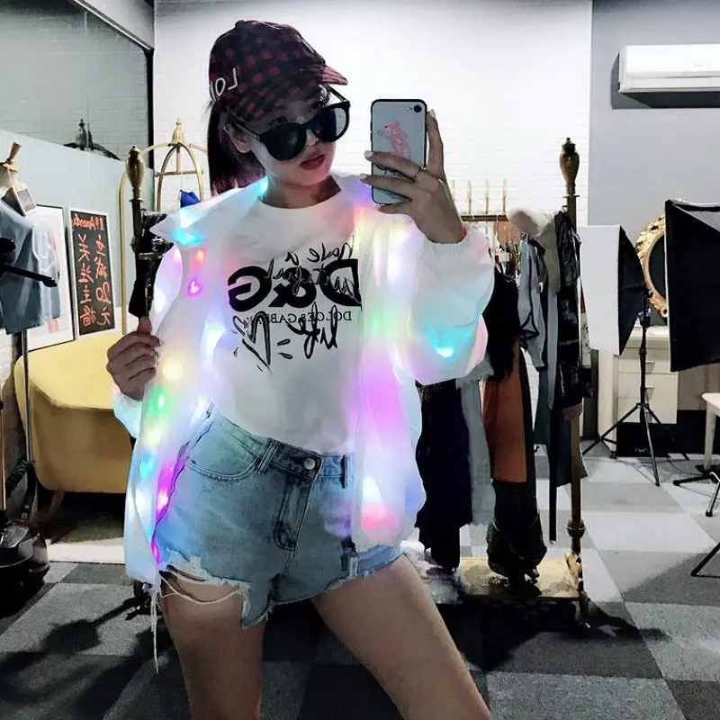 Special Offer Nouvelle mode hommes femmes unisexe DJ shine brillant blanc crème solaire vêtements de haute qualité LED lanterne couple rue Hiphop vestes manteaux Discount 29% Today!