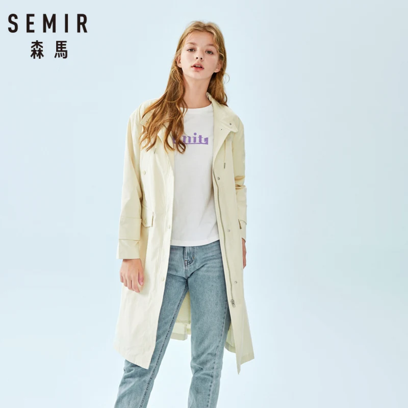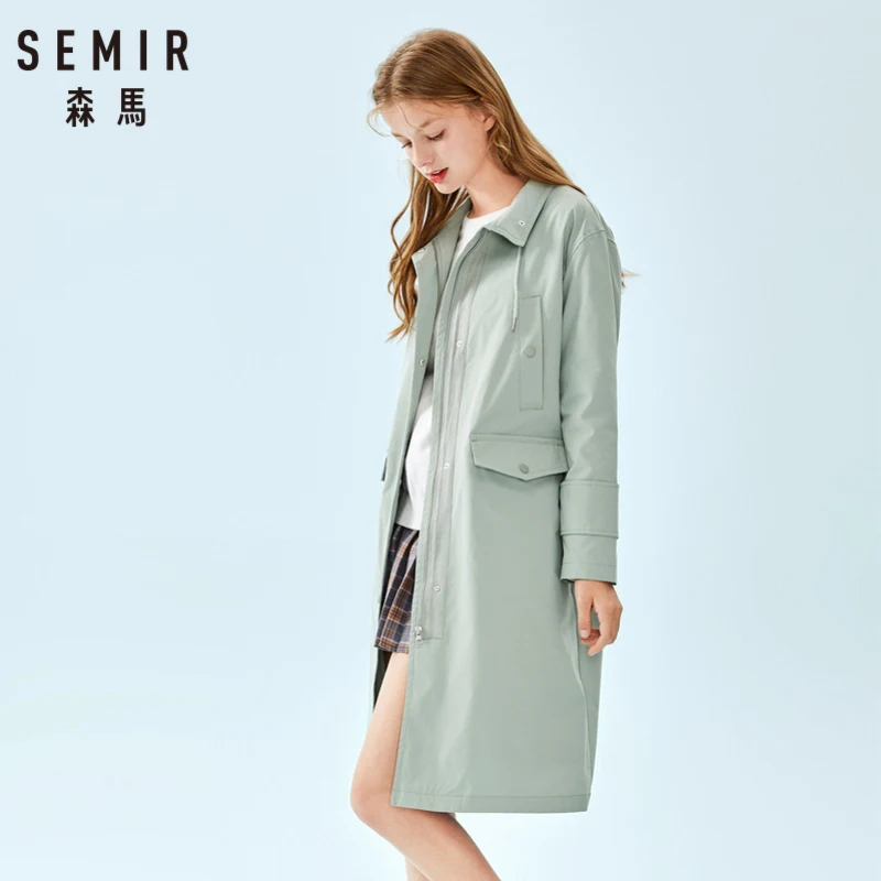 Special Offer SEMIR femmes longue veste utilitaire avec cordon 2019 col montant femmes Long Trenchcoat avec poche pour printemps automne Discount 32% Today!