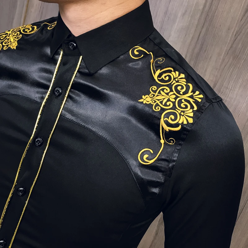 Special Offer Chemise coréenne de luxe hommes Kemeja Pria printemps brodé Slim manches longues chemise hommes Club Social chemise de bal Camisa Masculina Discount 41% Today!