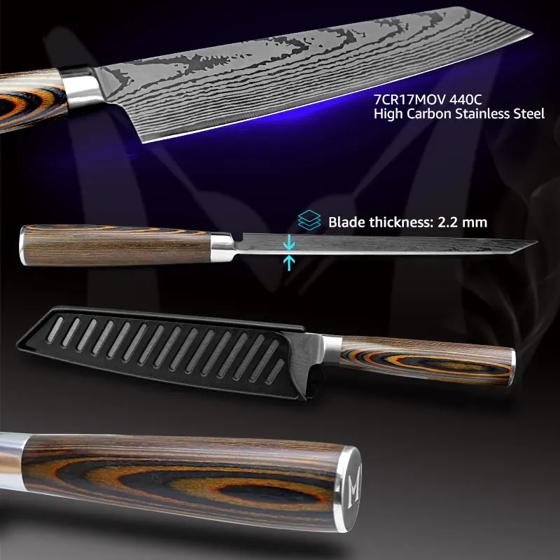 Special Offer Couteau de cuisine couteaux de Chef japonais 7CR17 440C haute teneur en carbone en acier inoxydable Imitation damas ponçage Laser couteau Discount 43% Today!
