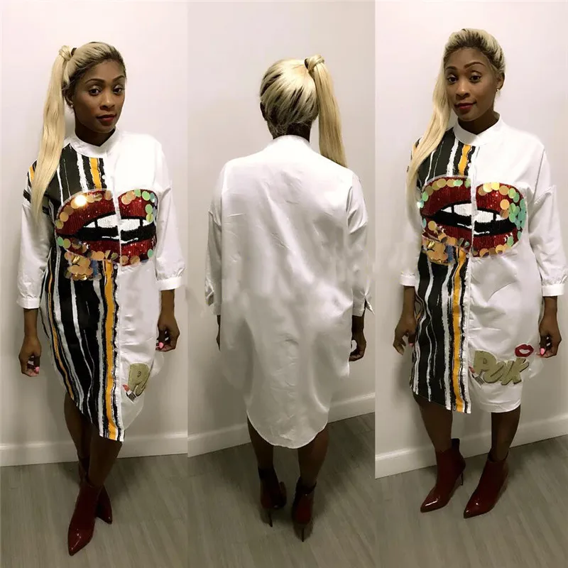 Special Offer Manches longues chemise robe femmes automne mode col montant bouton up Blouse robe dames Streetwear surdimensionné Sequin chemise robe Discount 45% Today!