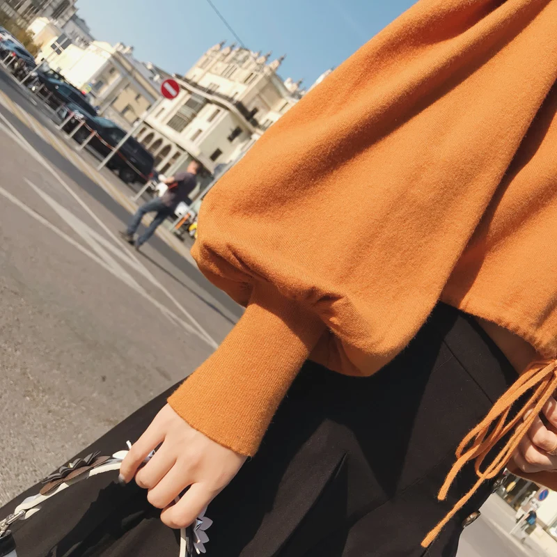 Special Offer 2019 MISHOW automne vintage pull tricoté pour les femmes mode casual col carré lanterne manches hauts courts MX18C5196 Discount 70% Today!