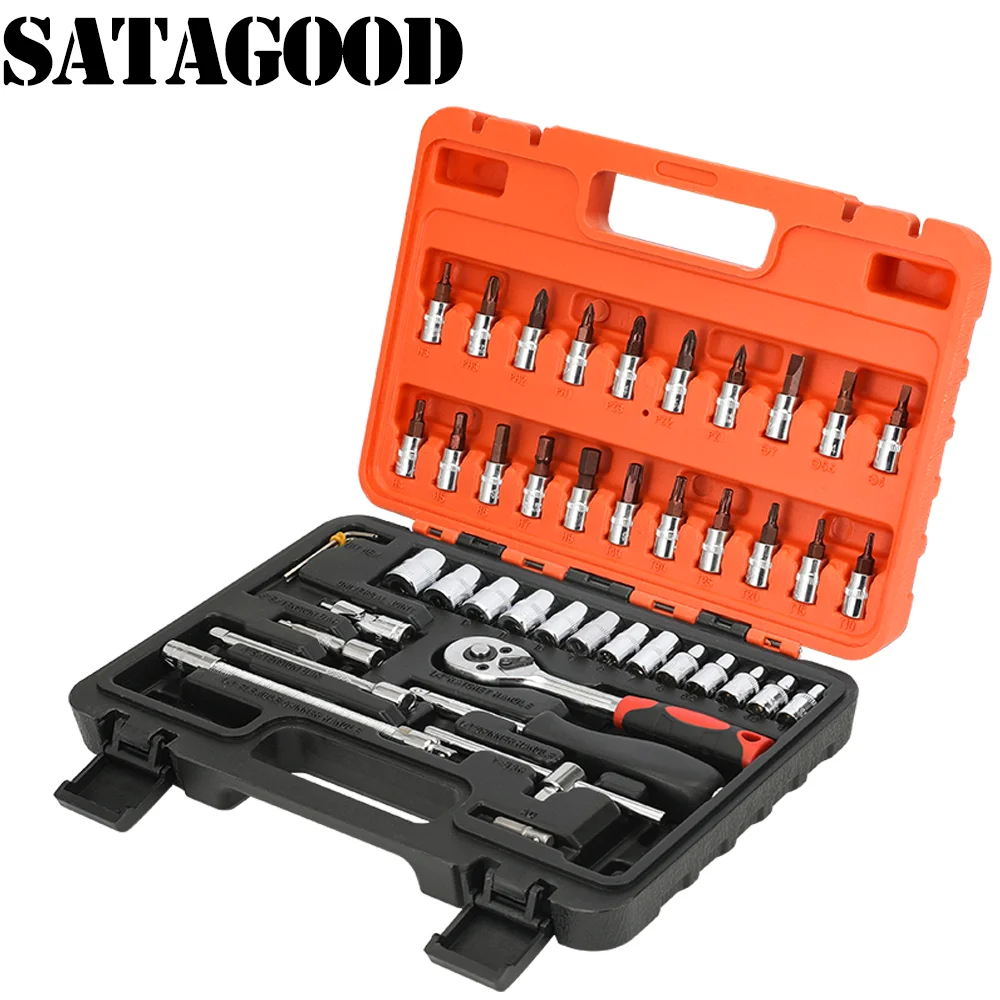 Special Offer SATAGOOD 46 pièces outil de réparation de voiture à cliquet couple clé à douille clé combinaison ensemble d outils à main G 10026 Discount 70% Today!