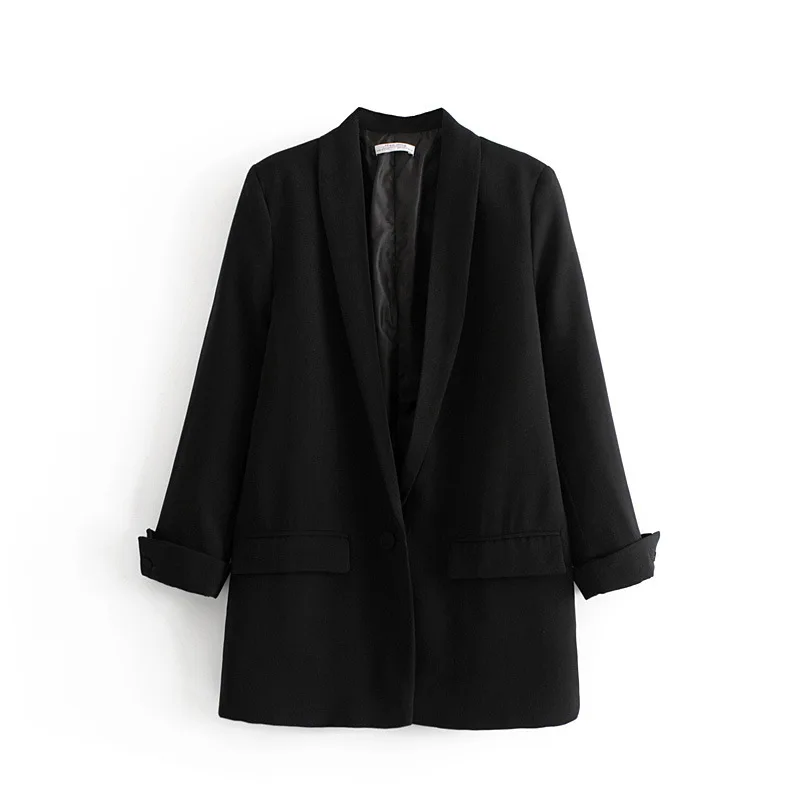 . (22% Off) Achat Femmes couleur unie Long Blazer veste manches plissées lâche manteau bureau dame travail Style petit costume simple bouton Blazer Pas Cher En Ligne.