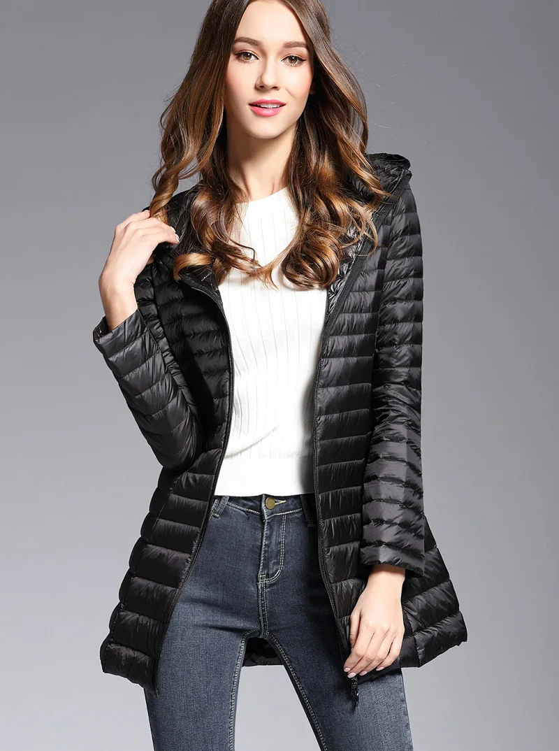 . (24% Off) Vente Femme printemps rembourré à capuche longue veste blanc canard vers le bas femme pardessus Ultra léger mince solide vestes manteau Portable Parkas Pas Cher Prix.